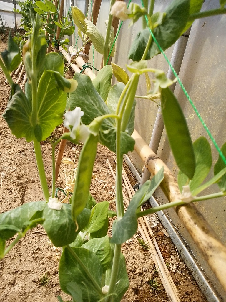雨水が過ぎたので雪ではなく雨が降り出しました。夜には雪になりそう。ハウスのなかは、太陽の光がないので、10度くらい。スナップエンドウが白い花をつけていました。こんなに、早くてヤバそう!(>_<)
