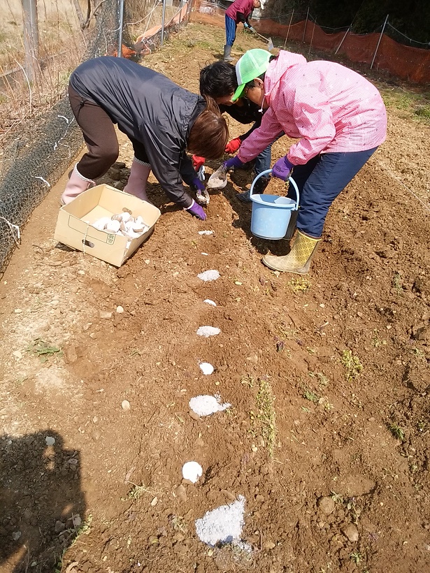 今年度最後の運営会議。来年度の体制を心配しながらも、また元気に野菜作りを続けていこうと意志一致。ポットに育ってていたレタスの苗を定植し、夏野菜の播種作業を行いました。二十日大根がほど良い大きさになったので参加者で分け合いました。キヌサヤ、スナップエンドウが  実をつけ始めています。