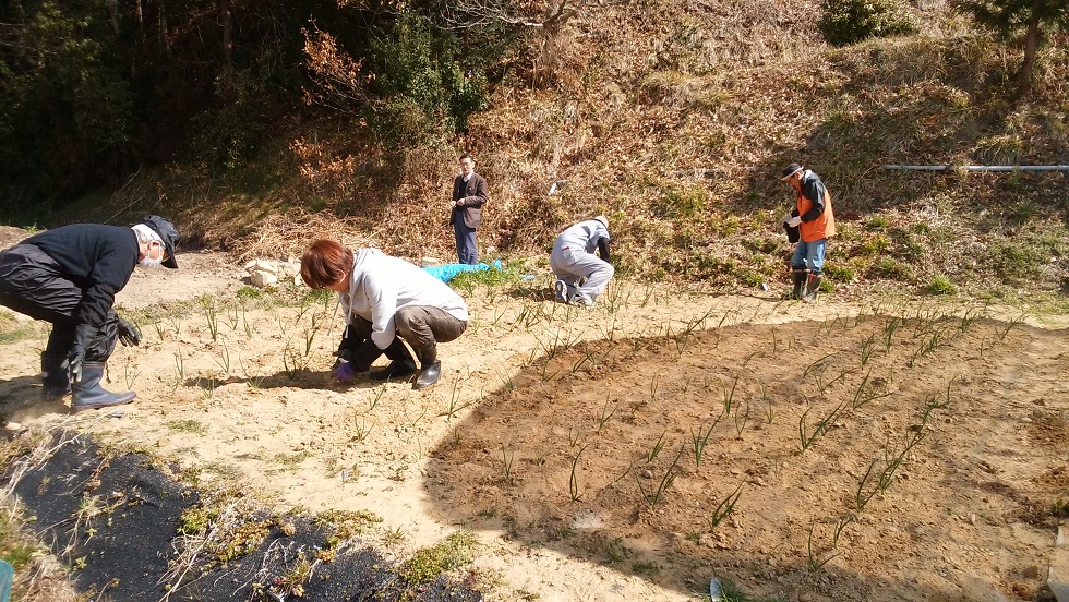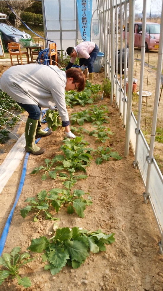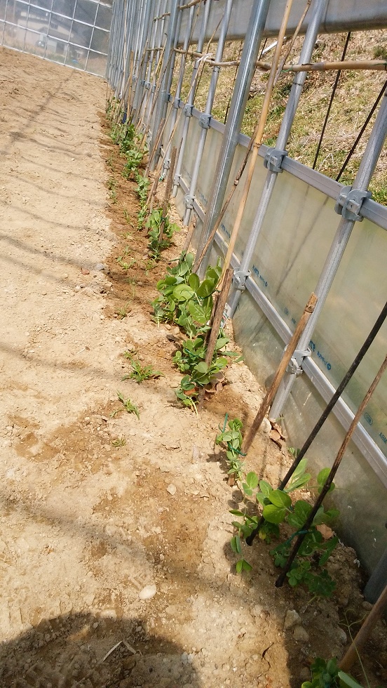 彼岸が過ぎても冬のような寒さのなか、今日も耕作地整理で石拾い。あまり寒いので、ハウスでの支柱立て作業に切り替え。キヌサヤがつるを出しお互いに絡み始めたので支柱を立ててやりました。今日も食べごろのラディシュを少し頂きました。(^^♪