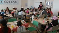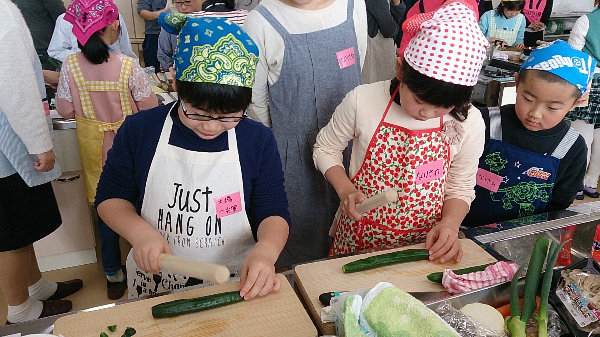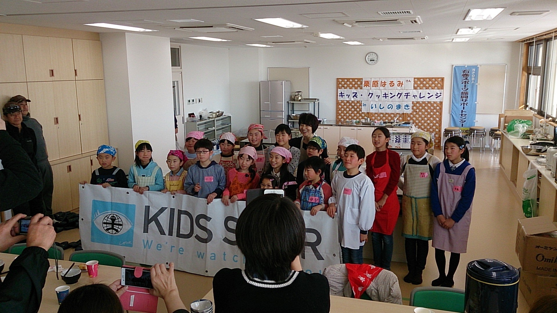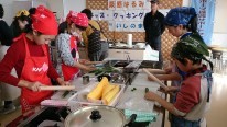 1月24日、大雪のなか、栗原はるみさんをお招きして、キッズ・クッキングチャレンジ(親子料理教室)を開催しました。この料理教室は、復興庁の心の復興事業の一環として『心の農園プロジェクト』と子どもたちに未来の可能性を拡げるチャレンジを支援する「キッズ・セーバー」との共催で実現。16組の親子が参加し、微生物農法で育てた野菜などで「叩きキュウリ」と「豚汁」を子どもたちだけでつくる(親は口も手も出さない)教室として行いました。初めて出会った子ども同士で、はじめは戸惑いもありましたが、優しく、わかりやすい栗原さんの指導でどんどん料理を作っていきました。約2時間かけ調理しその後は、参加者全員で試食会で自分たちの作ったものを味わいました。