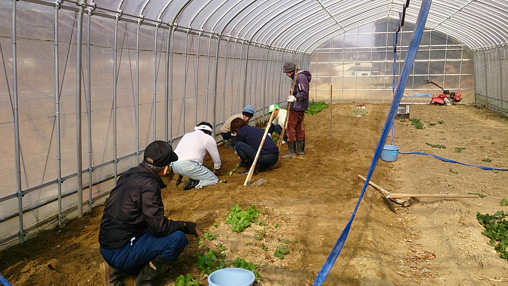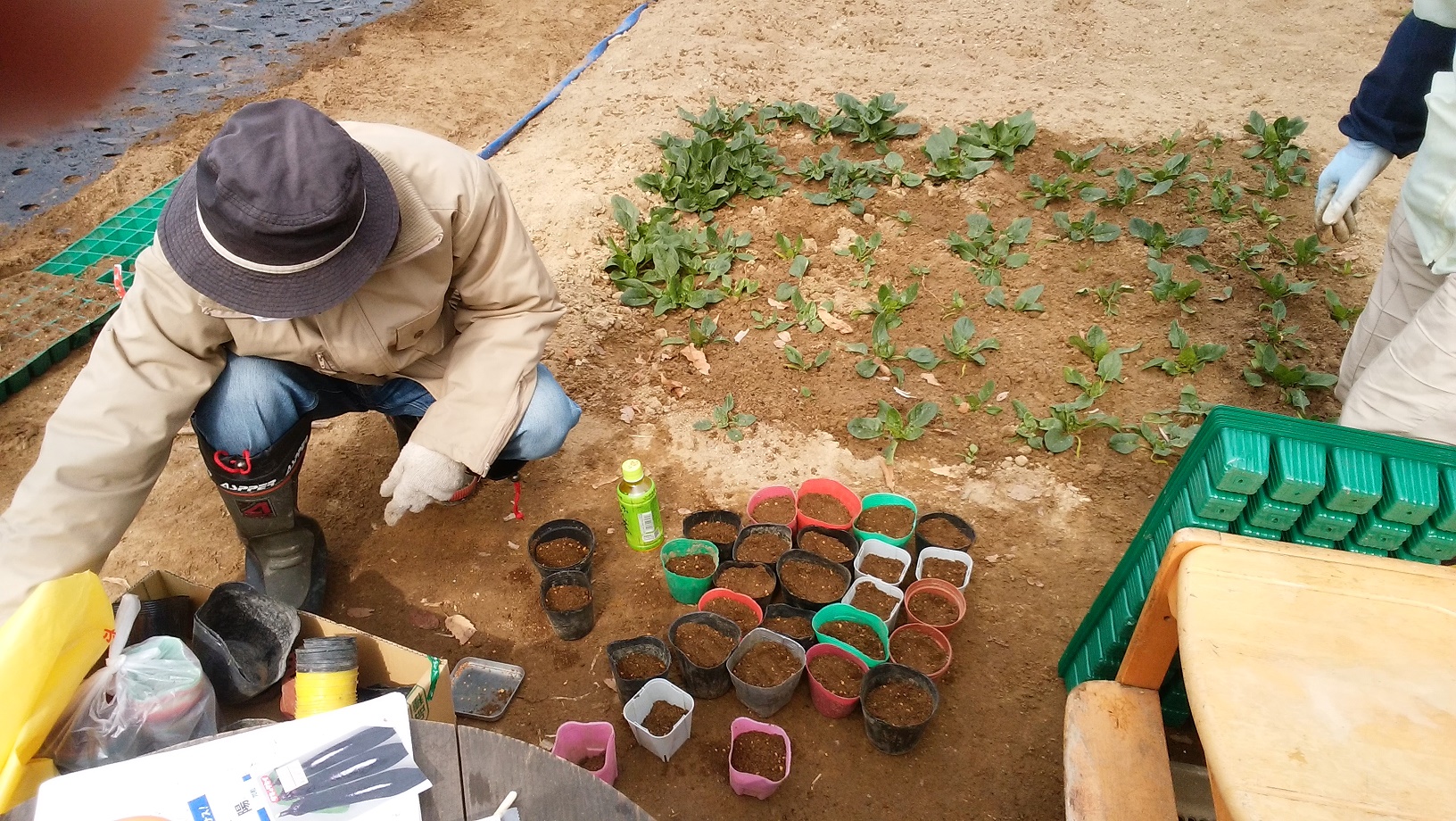 2月10日、運営会議終了後、ハウス内のホウレンソウ、春菊、ネギ、ニンジンを収穫。12日には、芽が出てきたスナップエンドウ、キヌサヤを植替え、白カブ、赤カブも間引きして整理しました。明日は、いよいよ、春・夏野菜の播種! トマト、キュウリ、ナス、ピーマン等の種を本日購入してきました。寒暖の差が激しい気候が続きますが、今年も元気に農園活動を展開していきます!