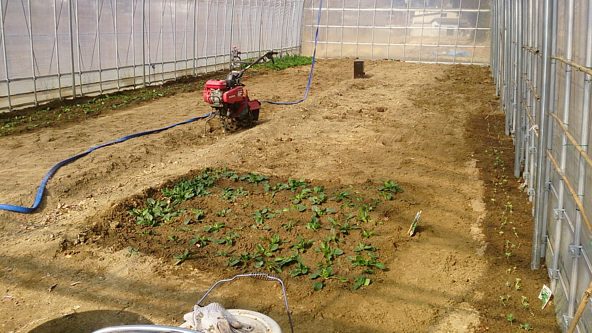 今朝、ハウスに入ったら12日に間引きした赤カブの周辺の土が盛り上がっていました。モグラ君が登場したようです。化学肥料を使わず無農薬の「微生物農法」で育てているのでミミズも豊富。餌を求めて紛れ込んできたのでしょう。野菜を横取りする「ハクビシン」よりはウェルカムですが。(^^♪