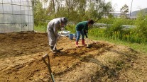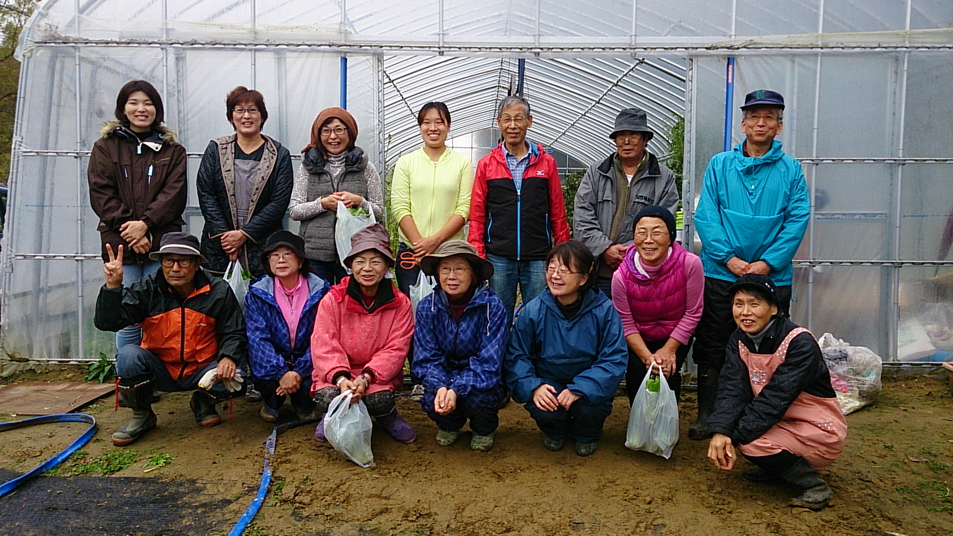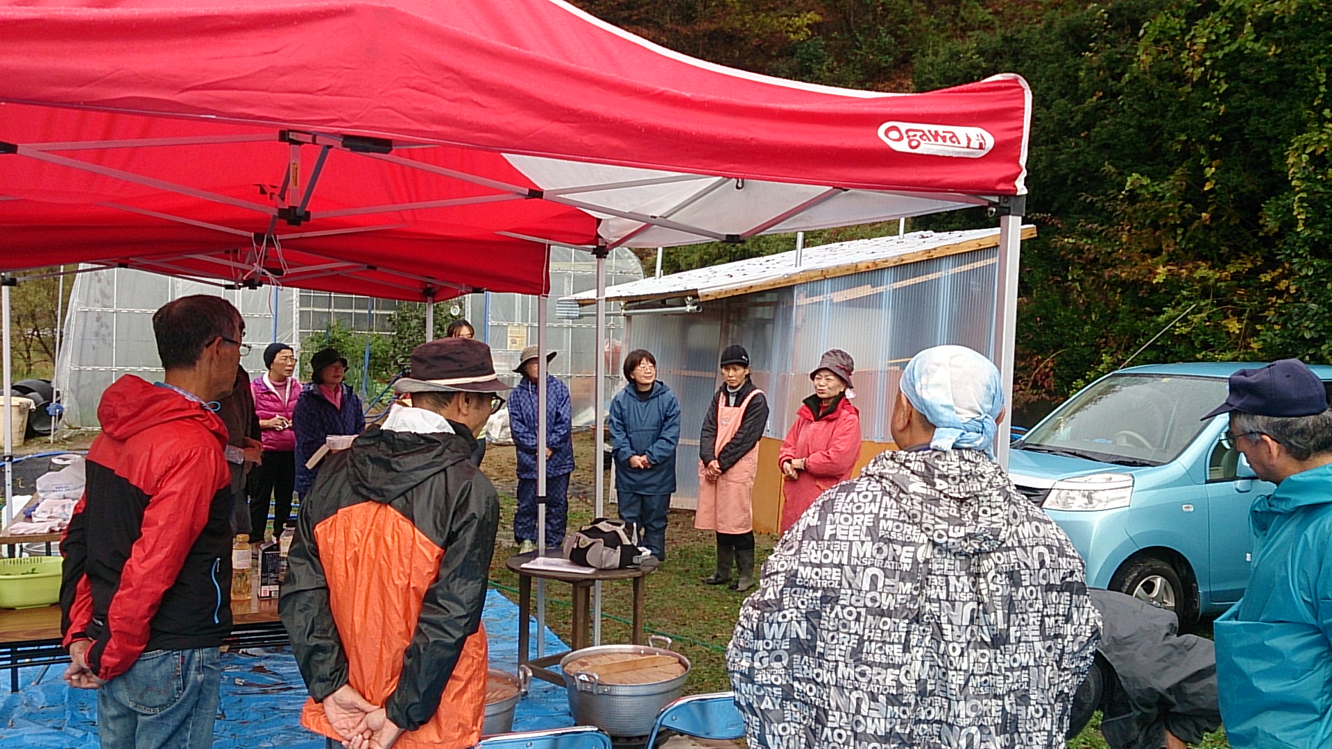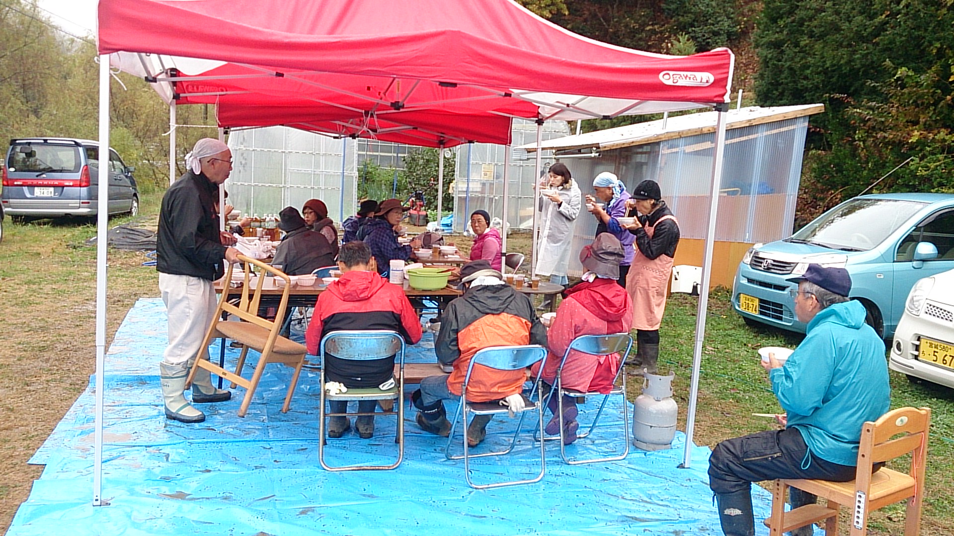 11月15日、前日からの雨で農園は泥んこ状態。その雨にも負けず、農園見学会&収穫祭を開催しました。18名の方が参加、参加者全員で山形風芋煮と宮城風芋煮を作りました。芋煮ができるまで参加者で自己紹介。各々の野菜作りへの思いが語られ、交流するなかで心の農園プロジェクトへの5名の方が参加することになりました。芋煮が出来上がり、おにぎりと一緒に2種類の芋煮を食べながら親睦を深めました。県下駅伝大会も傍で開催されており、そちらも気にしながらの収穫祭でした。