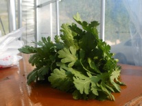 昨日、大量に頂いてきたパクチーで、虫から野菜を守る虫除け液を、今日作りました☆