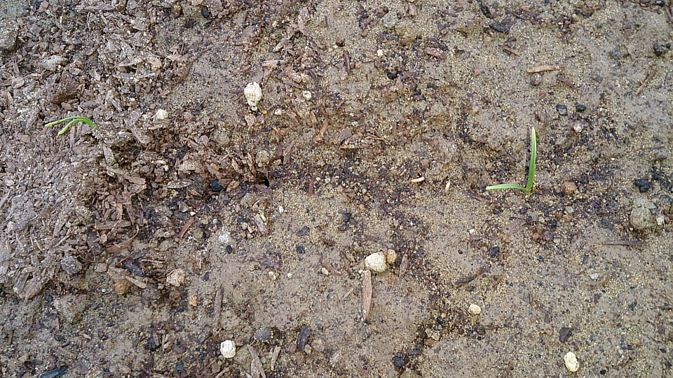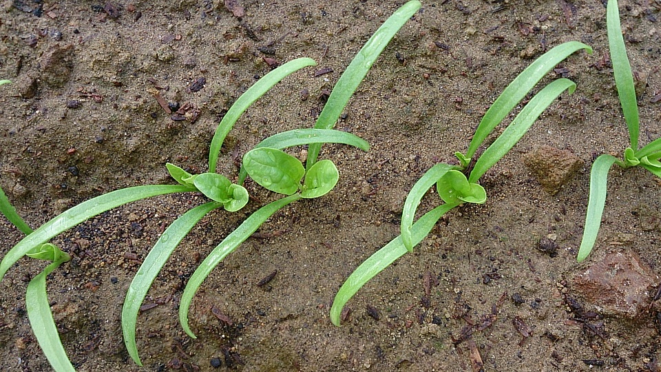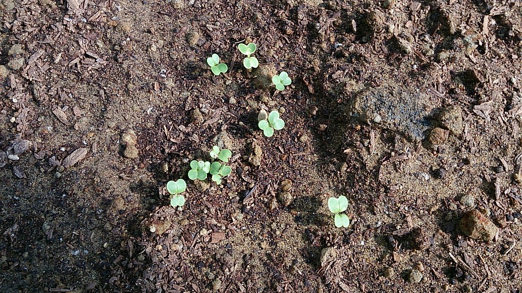 農園プロジェクト、二十日大根の芽に続けて、ホウレンソウも芽を出し始めています。