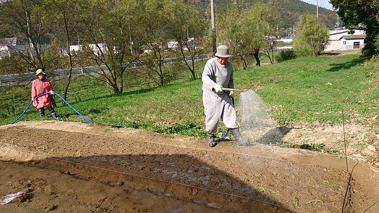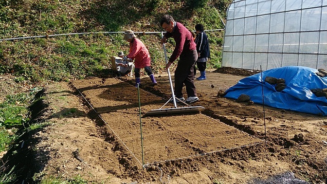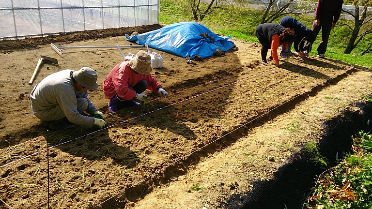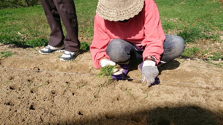 ベットをつくって、一条に50本ずつ丁寧に?参加者で植えつけました。