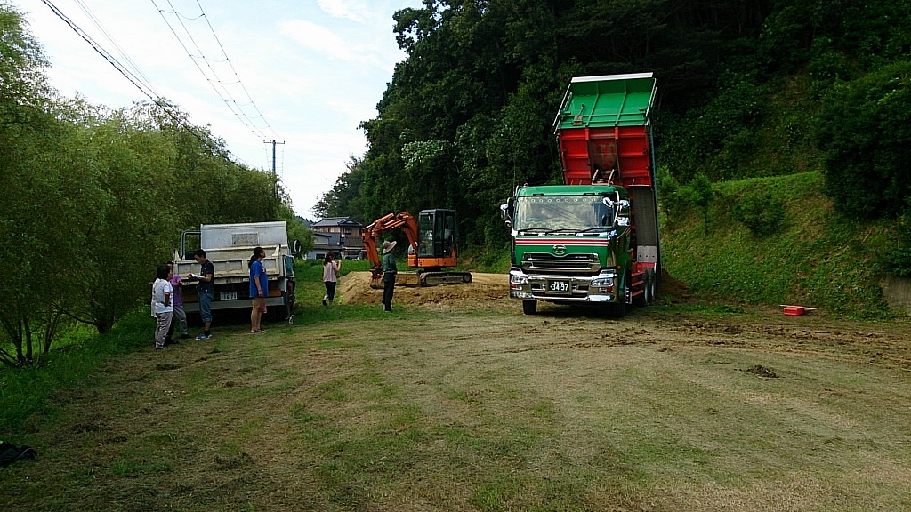 開成、南境団地の地域づくりとしての「農園プロジェクト」が具体的に動き出しました。本日(20日)、農園予定地に終日、10tトラックで18台分の客土が搬入され、重機で整地されました。