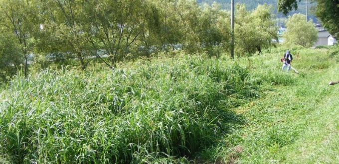 あす20日(水)には、いよいよ客土搬入のため、本日、当NPO法人のスタップによる草刈りを致しました。