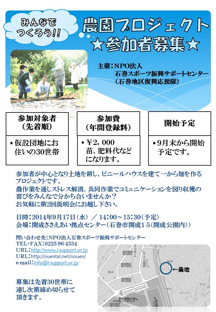 『農園プロジェクト』について先日取材を受け、河北新報朝刊に記事 を掲載していただきました。http://www.kahoku.co.jp/tohokunews/201409/20140908_13020.html