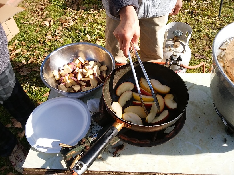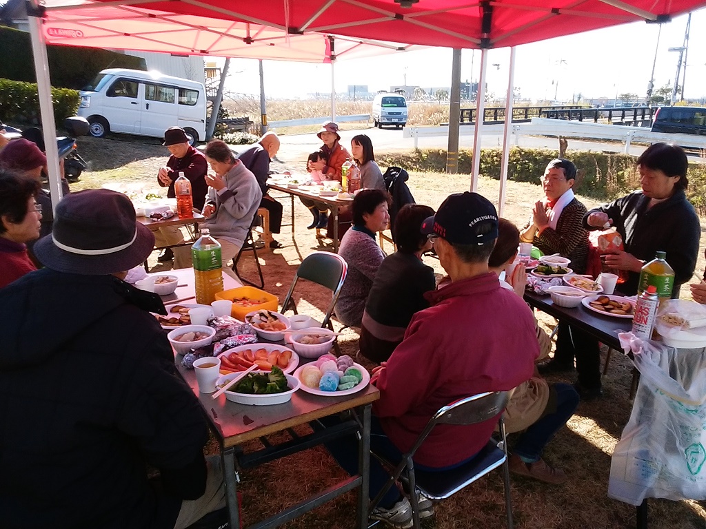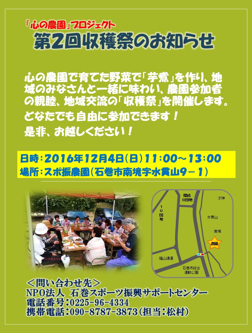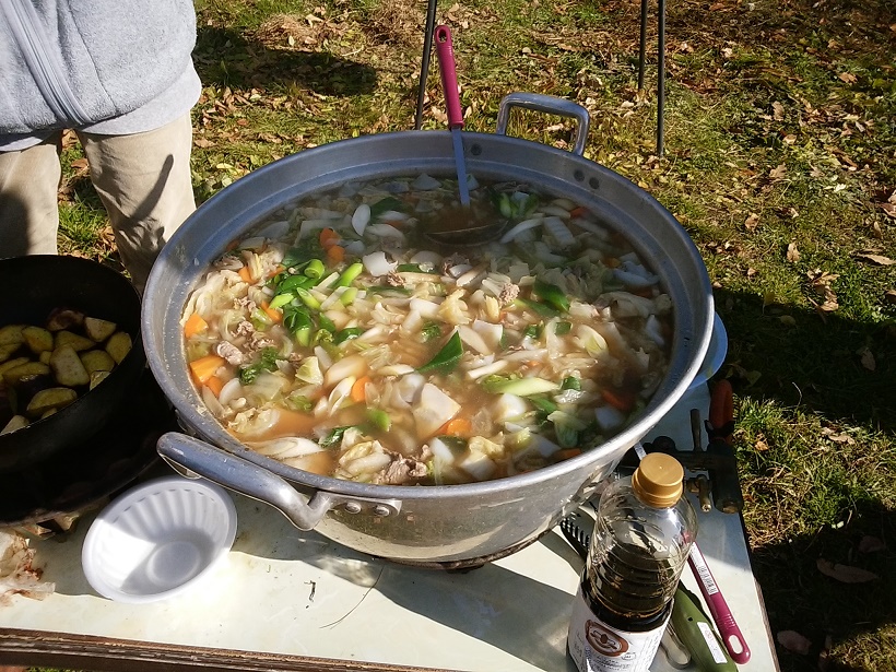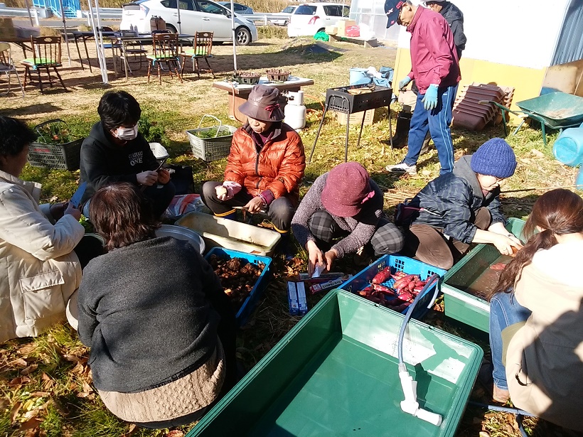 絵に描いたような「小春日和」の12月4日、「心の農園」今年2回目の「収穫祭」を開催しました。農園で栽培した里芋、ネギ、人参、大根を使い「芋煮」を作り、ほうれん草は「おひたし」に、大きく育ったブロッコリーを茹で、リンゴとサツマイモは「ココナツオイル焼き」、残りのサツマイモは、炭火で「焼き芋」にしました!会員のみなさんの手作りの「漬物」と「すあま」とテーブルはいっぱいに。参加者で野菜を楽しく美味しく頂きました。