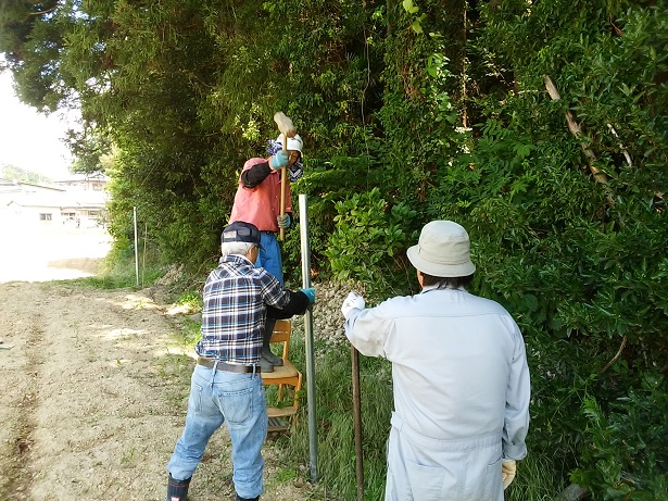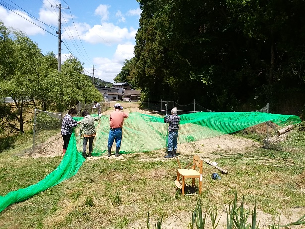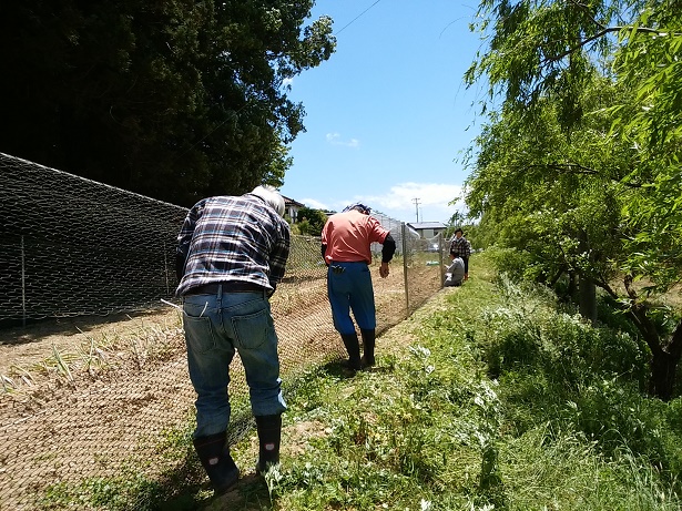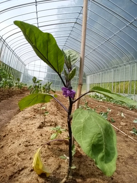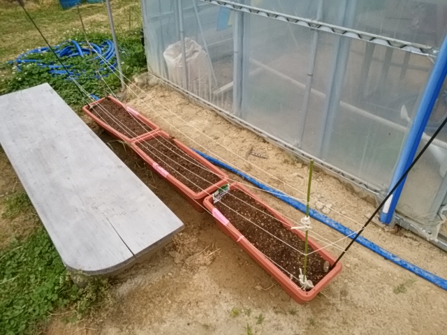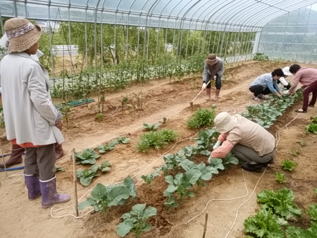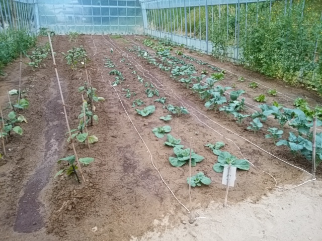 5月25日、運営会議終了後、ハウス内には、ナス苗、ピーマン苗を植え、スティックセニョールの間引きを行い、ハウス外には、分株ネギを植えました。なんとか農園らしくなってきました。